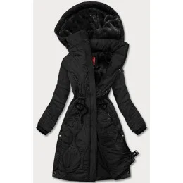 Černá dámská zimní bunda v délce ke kolenům (m-21601)