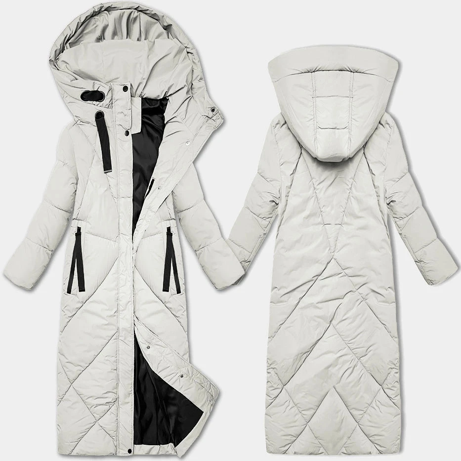 Dámská zimní bunda v barvě ecru v délce ke kolenům J Style (5M3232-281)
