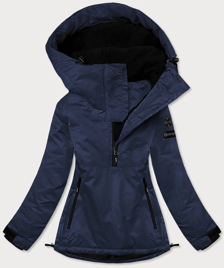 Tmavě modrá dámská zimní bunda klokaního typu (b2361)