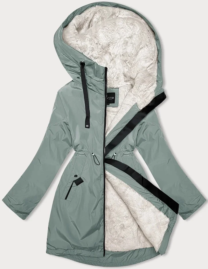 Světle zelená dámská zimní bunda s kožešinovou podšívkou Miss TiTi (H-2978)