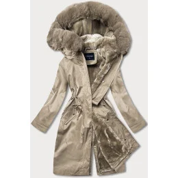 Béžová dámská zimní bunda s podšívkou z mechovité kožešiny (b537-46)