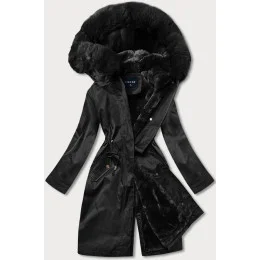 Černá dámská zimní bunda s podšívkou z mechovité kožešiny (b537-1)