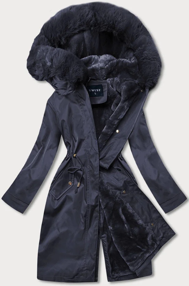 Tmavě modrá dámská zimní bunda s podšívkou z mechovité kožešiny (b537-3)