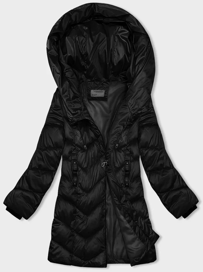 Černá dámská zimní bunda s asymetrickým zipem (B8167-1)