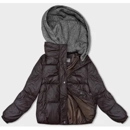Hnědá dámská zimní bunda s úpletovou kapucí (B8213-14)
