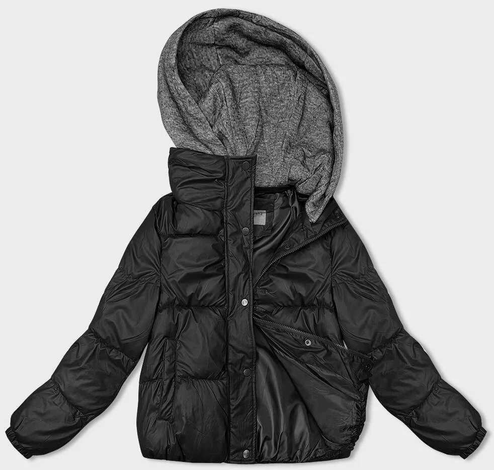 Černá dámská zimní bunda s úpletovou kapucí (B8213-1)