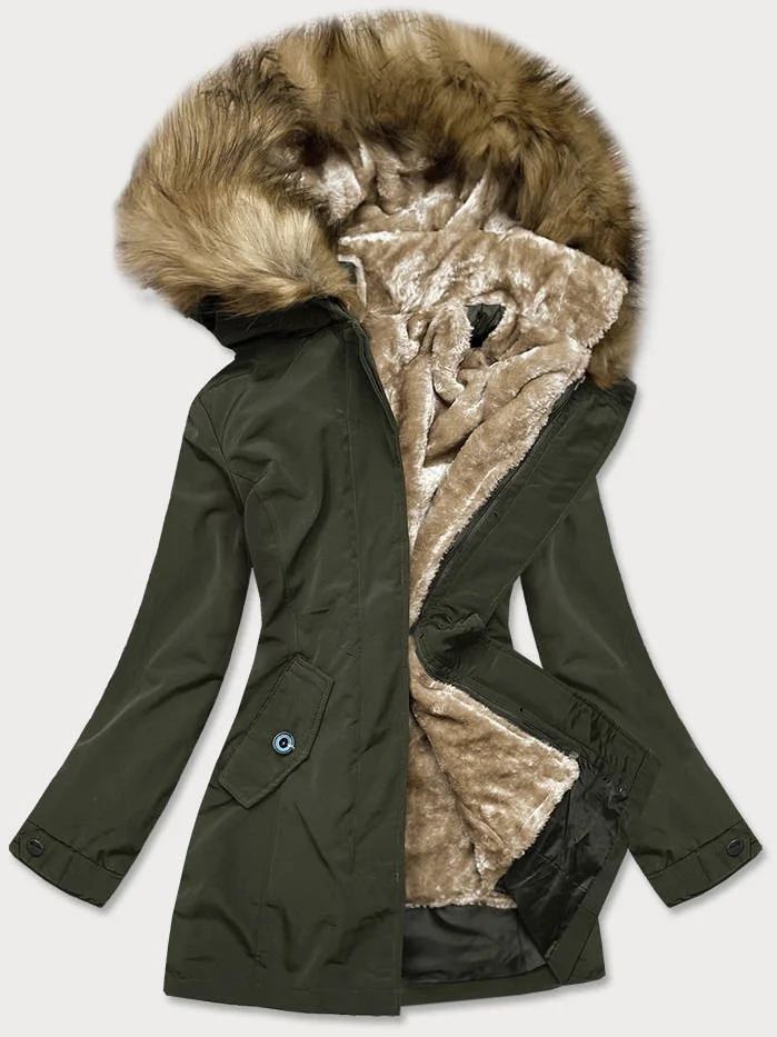 Dámská zimní bunda v army barvě s odepínací kožešinovou podšívkou (m-21005)