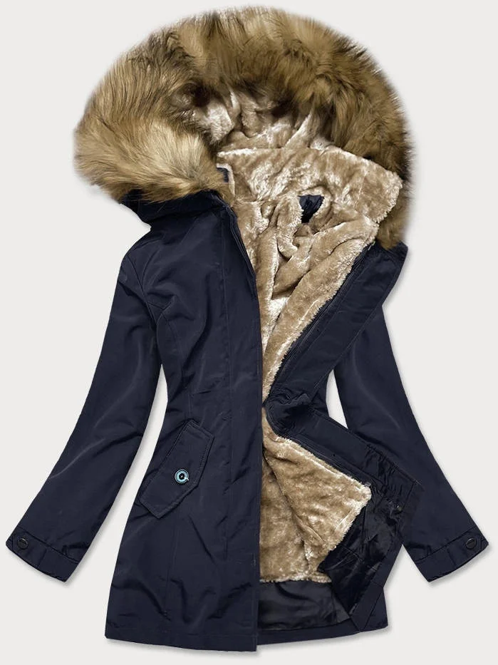 Tmavě modrá dámská zimní bunda s odepínací kožešinovou podšívkou (m-21005)