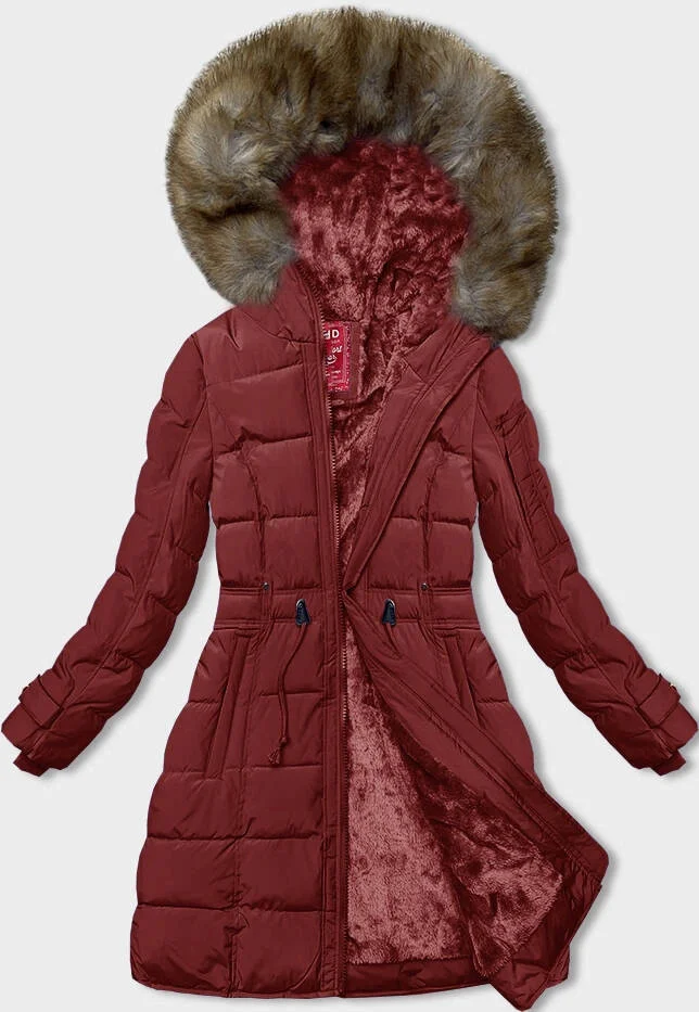 Červená dámská zimní bunda s kožešinovou podšívkou (LHD-23063)