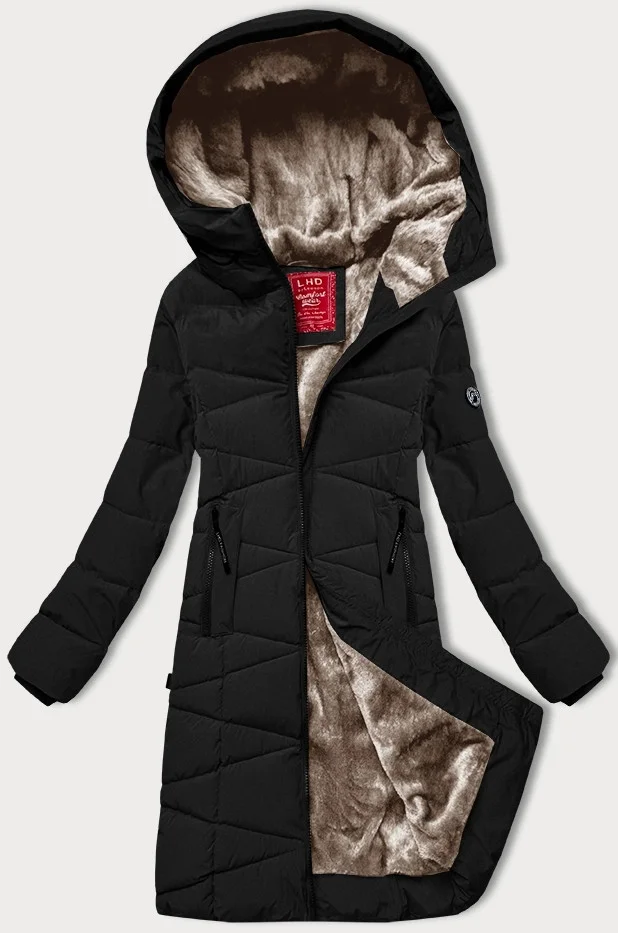 Černá dámská zimní bunda s kožešinovou podšívkou LHD (LHD-24578)