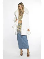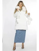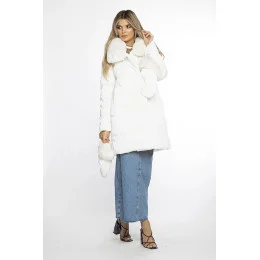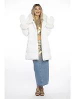 Bílá dámská zimní bunda s kožešinovým límcem a rukavicemi Ann Gissy (AG9-9002)