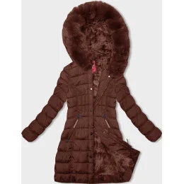 Dámská zimní bunda v cihlové barvě s kapucí (2M-21013)