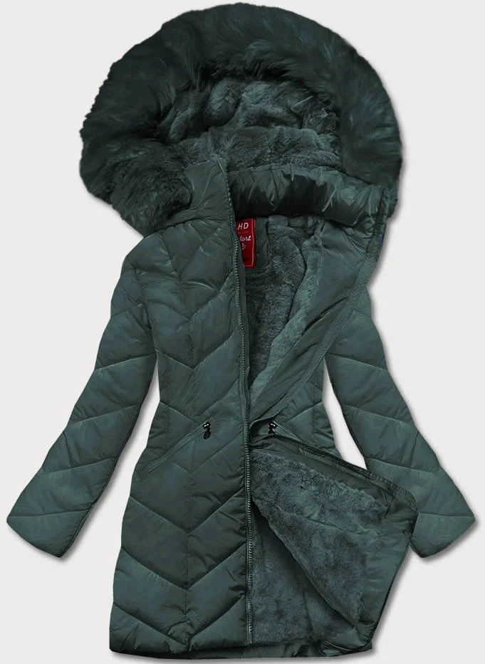 Tmavě zelená dámská zimní bunda s kapucí (2m-21308)