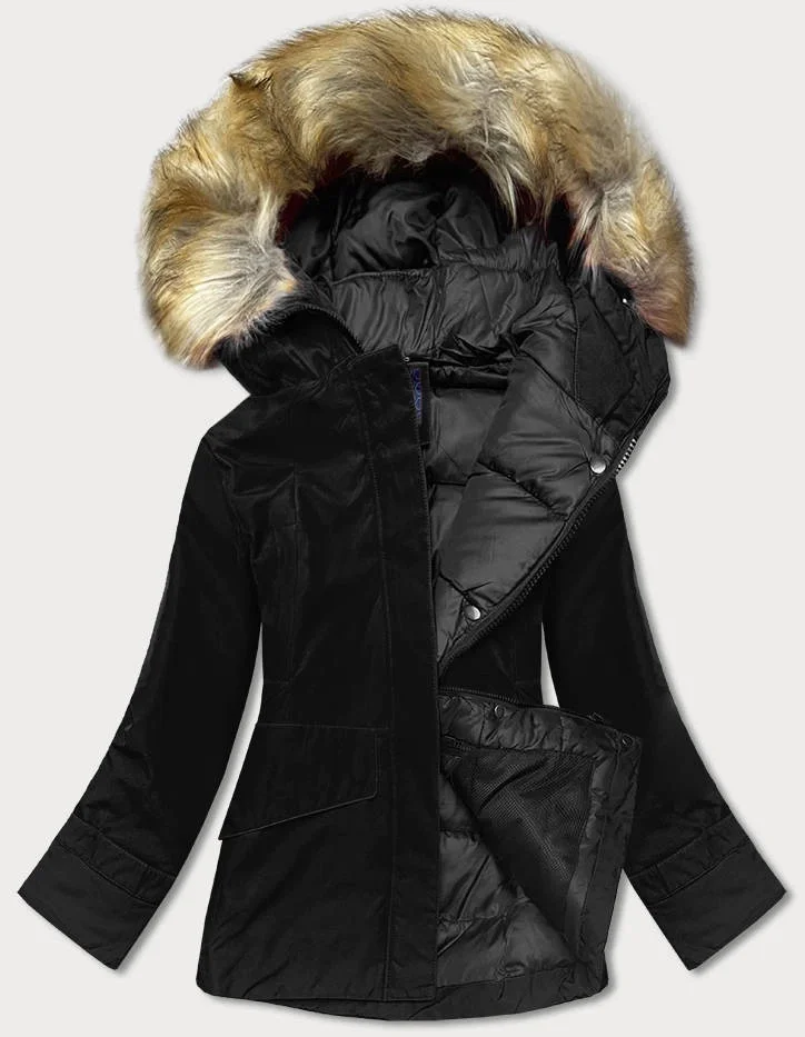 Černá dámská zimní bunda s kapucí (j9-066)
