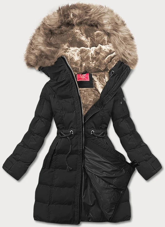 Bunda je lehce vypasovaná, je zateplená vrstvou syntetické péřové výplně a unvitř má navíc na zádech kožešinu, má dvě kapsy a zapíná se dvoustranným zipem. Kapuci lemuje kožešina, kterou je možné odepnout. V pase modelu jsou stahovací šňůrky. Na koncích rukávů jsou skryté stahovací lemy. Bunda má délku do poloviny stehen.