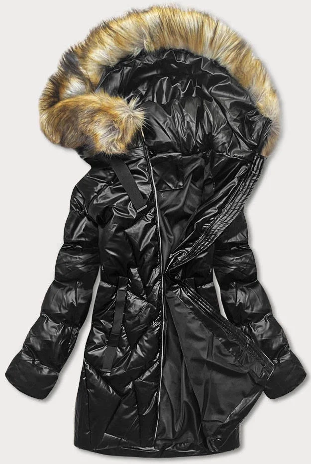 Černo-hnědá dámská zimní bunda s kapucí (5m775-392)