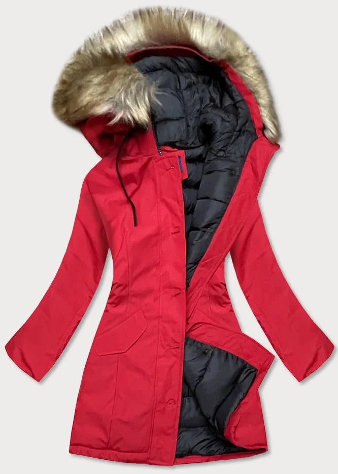 Bunda má jednoduchý střih, je zateplená syntetickou péřovou výplní, má dvě kapsy a zapíná se dvojitým zipem a panelem s knoflíky. Model má kapuci olemovanou kožešinou. Zatímco kapuci není možné odepnout, kožešinu odepnout lze. Uvnitř modelu jsou v pase stahující gumy. Na koncích rukávů jsou skryté stahovací lemy. Bunda má délku do poloviny stehen.