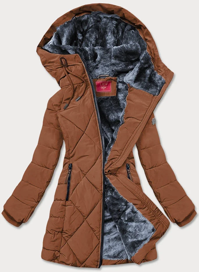 Dámská zimní bunda v karamelové barvě s kapucí (m-21003)