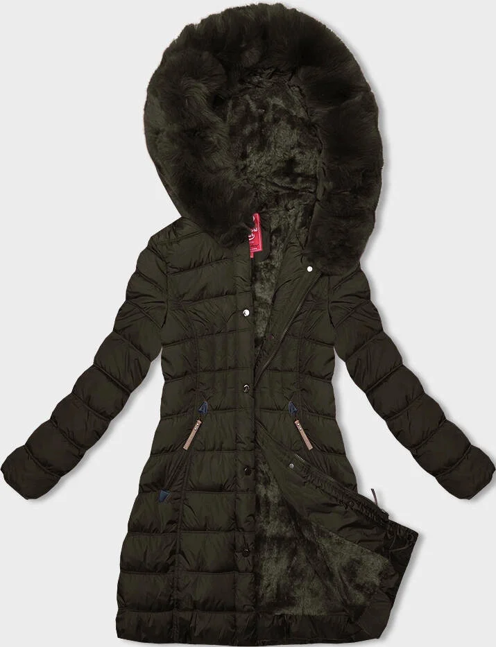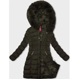 Dámská zimní bunda v khaki barvě s kapucí (2M-21013)