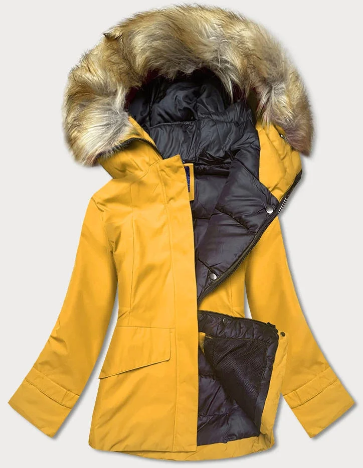Žlutá dámská zimní zimní bunda s kapucí (j9-066)