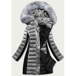 Šedá dámská zimní bunda z různých spojených materiálů (dk067-45)