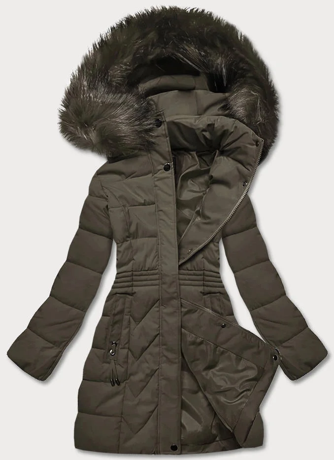 Dámská zimní bunda v army barvě s odepínací kapucí (16m9060-136)