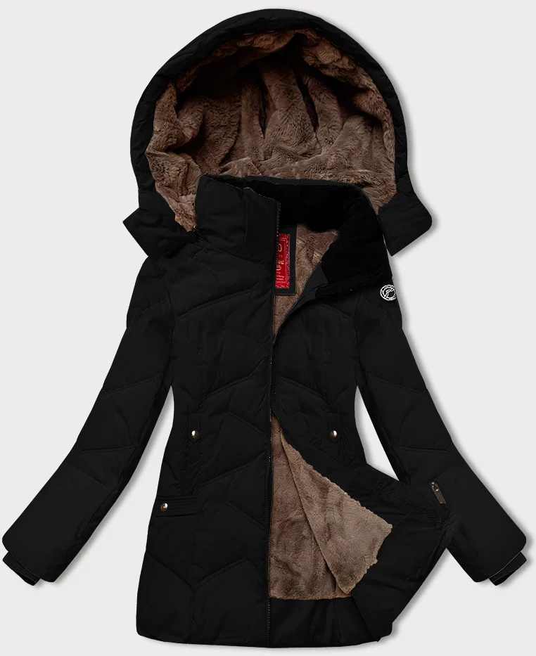 Černá dámská zimní bunda s odepínací kapucí LHD (LHD-24577)