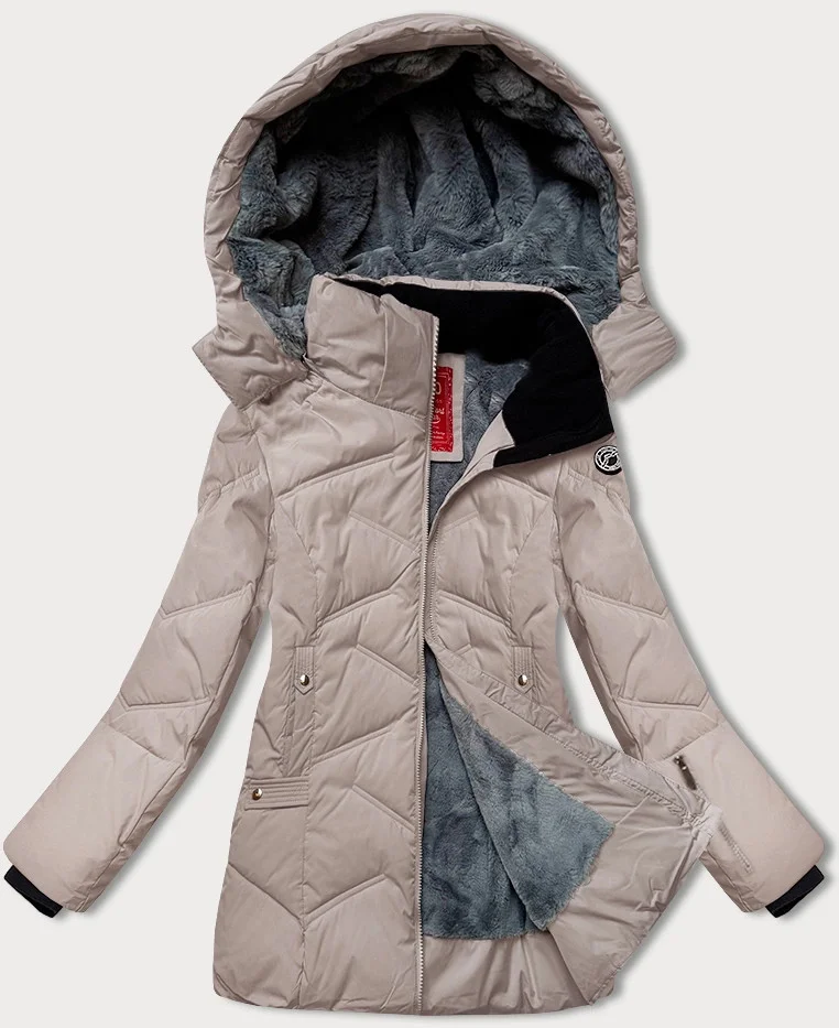 Světle béžová dámská zimní bunda s odepínací kapucí LHD (LHD-24577)