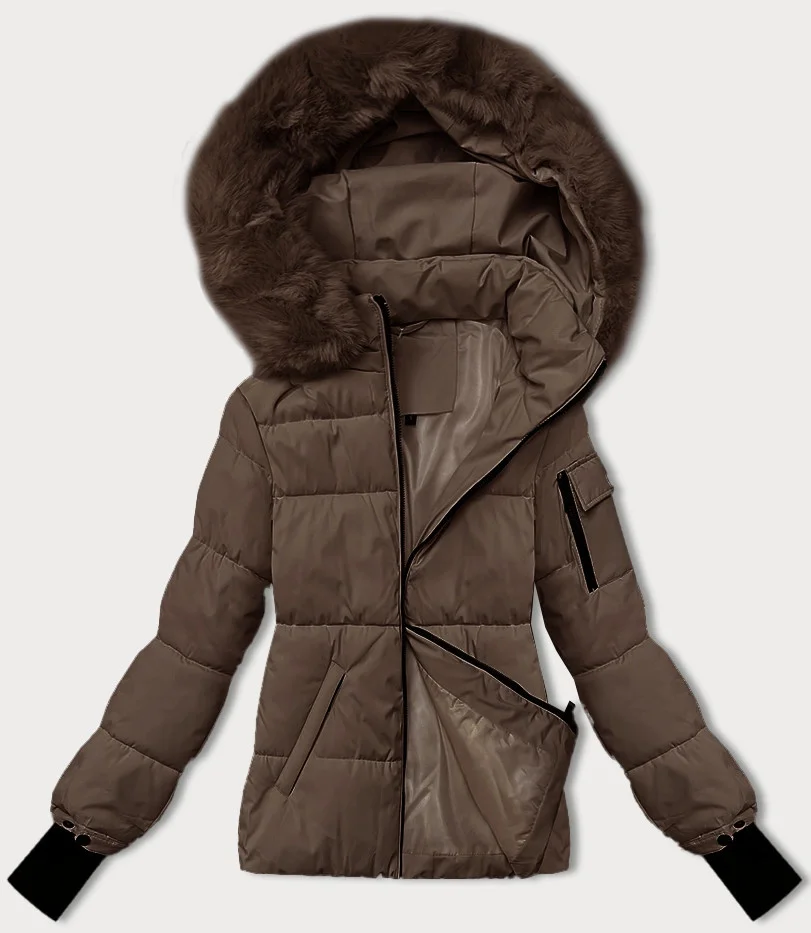 Dámská zimní bunda v kakaové barvě s odepínací kapucí S'west (B8303-48)