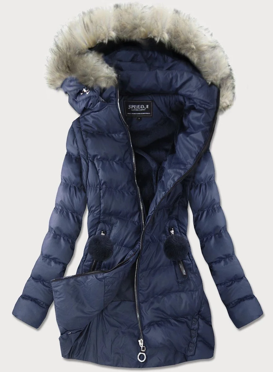 Tmavě modrá dámská zimní bunda s odepínacími rukávy (w761)