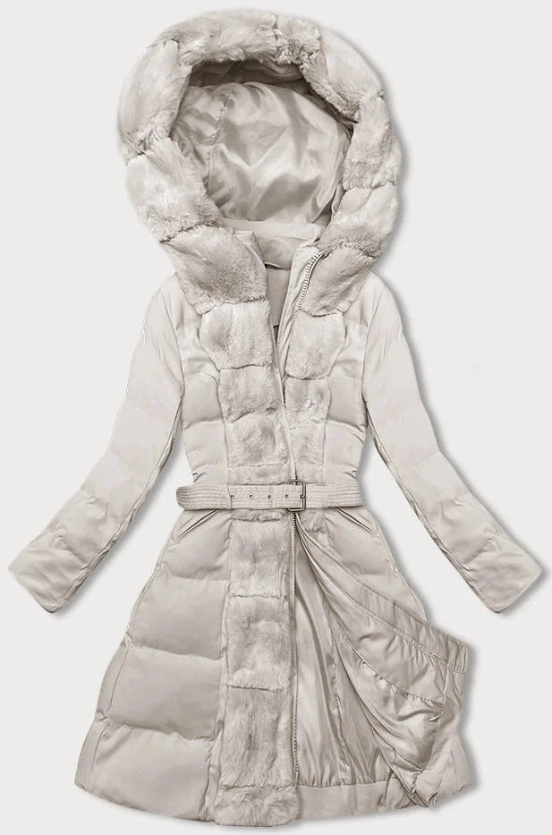 Dámská zimní bunda v barvě ecru s ozdobnou kožešinou (5M3158-254)