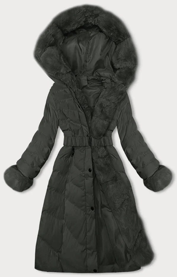 Dámská zimní bunda v army barvě s opaskem (5M3156-136)