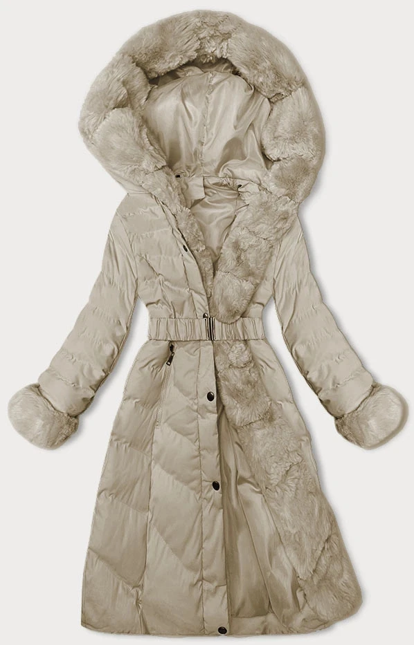 Béžová dámská zimní bunda s opaskem (5M3156-62)