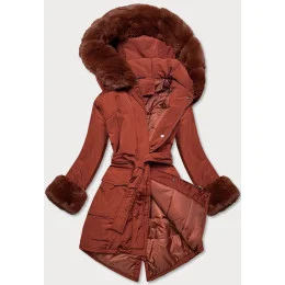 Dámská zimní bunda v cihlové barvě s páskem (f7039-5)