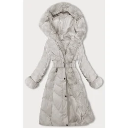 Dámská zimní bunda v barvě ecru s opaskem (5M3156-254)