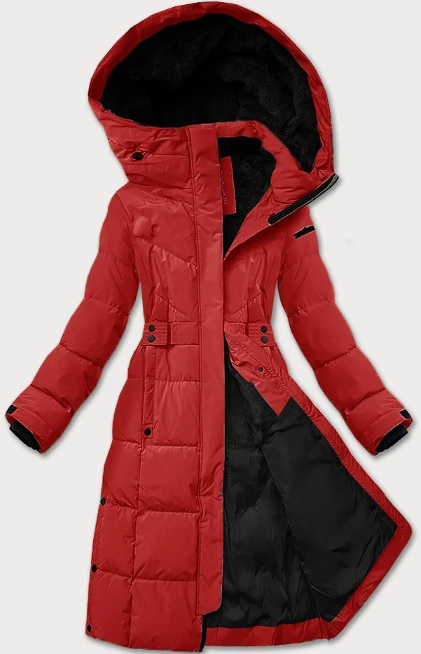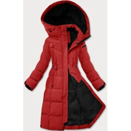 Tmavě červená dámská zimní bunda s páskem LHD (LHD-24575)