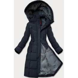 Tmavě modrá dámská zimní bunda s páskem LHD (LHD-24575)