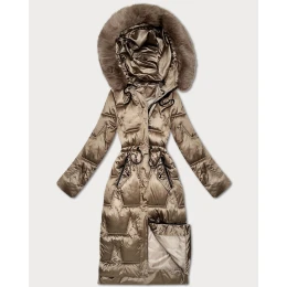 Tmavě béžová dámská zimní bunda se stahováním v pase S'West (B8522-12)
