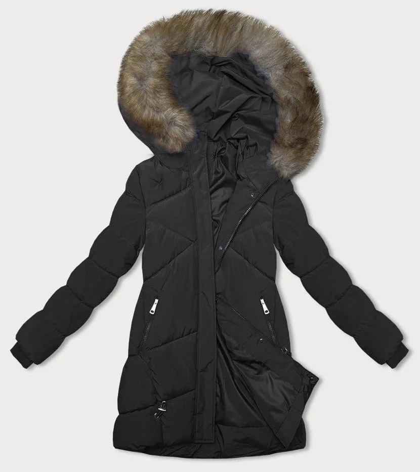 Černá zimní bunda s kapucí (LHD-23015)