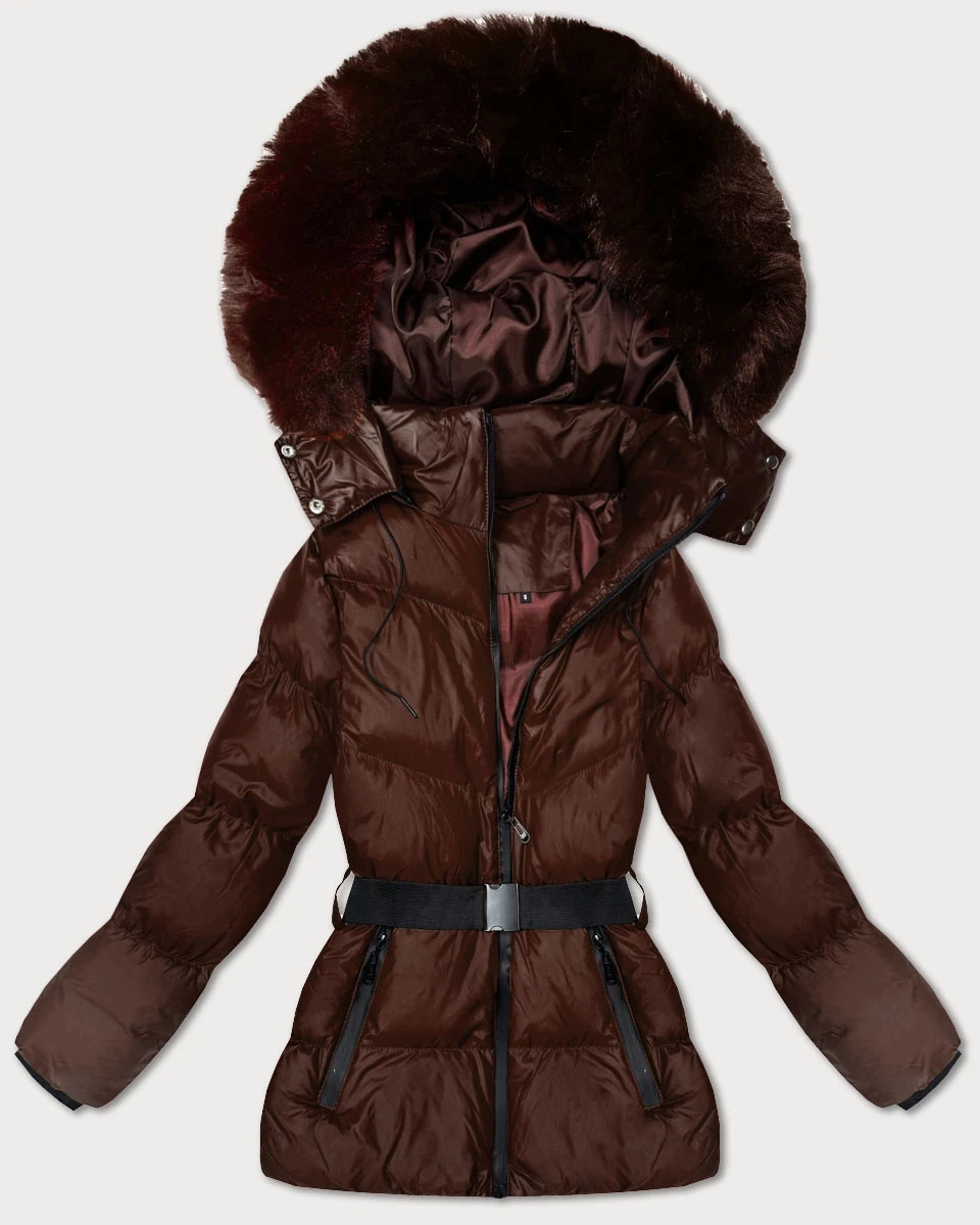 Hnědá zimní bunda s kapucí a s opaskem J Style (5M3322-158)