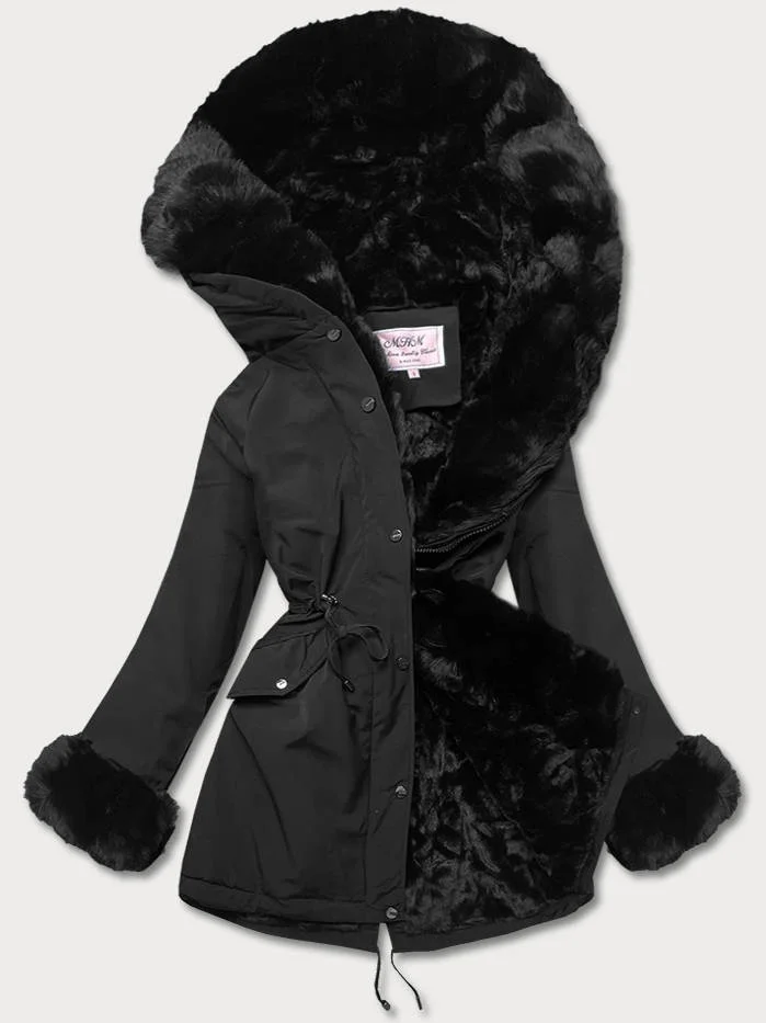Černá dámská zimní bunda parka s kožešinovou podšívkou (W619/1)