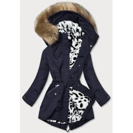 Tmavě modrá dámská zimní bunda parka s kožešinovou podšívkou (can-578)