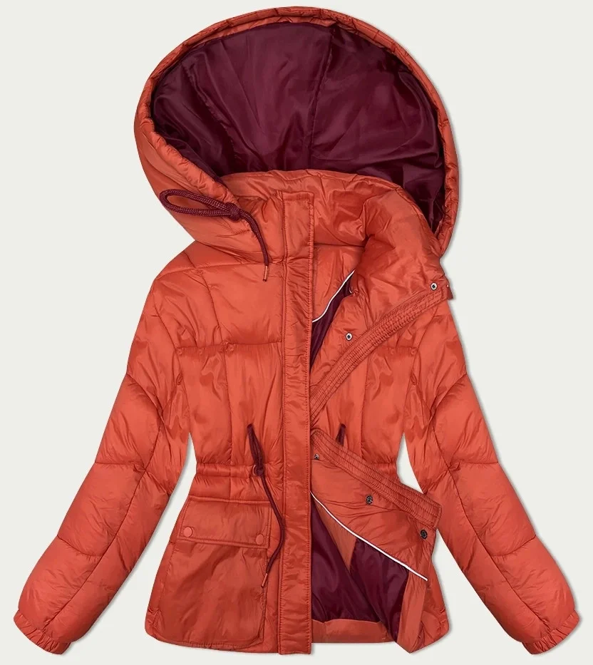 Dámská zimní prošívaná bunda v korálové barvě s odepínací kapucí (15200)