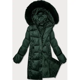 Tmavě zelená zimní prošívaná plus size bunda s kapucí S'west (B8267-10)
