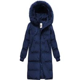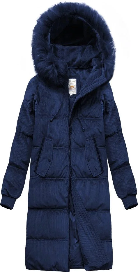 Tmavě modrá dámská zimní manšestrová bunda s kapucí (7763)