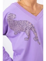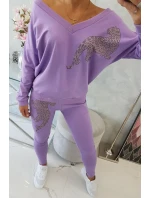 Prezentujemy Państwu komplet bluzy i spodni. Bluza oraz spodnie posiadają panterę z cyrkonii. Spodnie z kieszeniami i wiązaniem w pasie. Bluza z dekoltem V. Komplet wykonany jest z wysokiej jakości materiału. Rozmiar jest uniwersalny i będzie odpowiedni dla Pań w rozmiarze S, M lub L.
