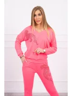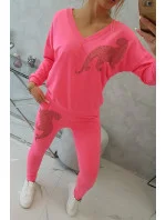 Prezentujemy Państwu komplet bluzy i spodni. Bluza oraz spodnie posiadają panterę z cyrkonii. Spodnie z kieszeniami i wiązaniem w pasie. Bluza z dekoltem V. Komplet wykonany jest z wysokiej jakości materiału. Rozmiar jest uniwersalny i będzie odpowiedni dla Pań w rozmiarze S, M lub L.