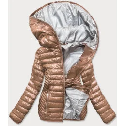 Zlatá prošívaná dámská bunda s kapucí (B9752)