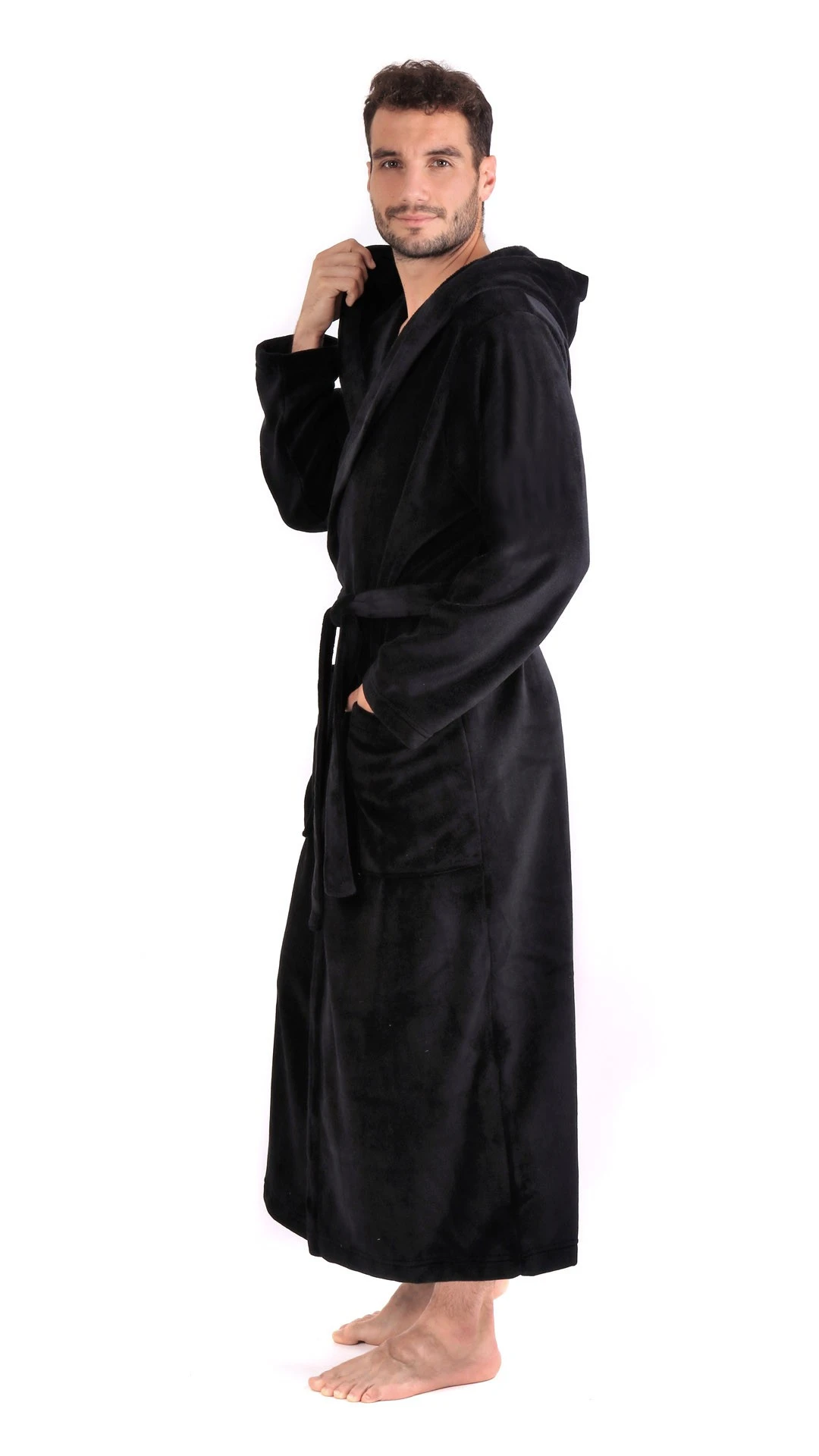 - v savé variantě vyrábíme čistě černé župany s kapucí v kolekci Tampa