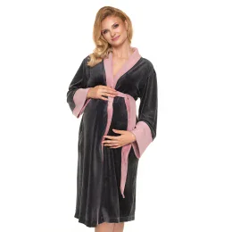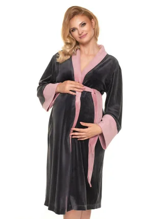 Župan s páskem a dlouhými rukávy. Župan je vyroben z měkké velurové tkaniny.